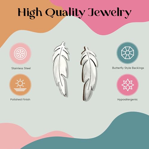 FashionJunkie4Life Sterling Silver Bird Stud Earrings with Butterfly Backs (Feather) 6