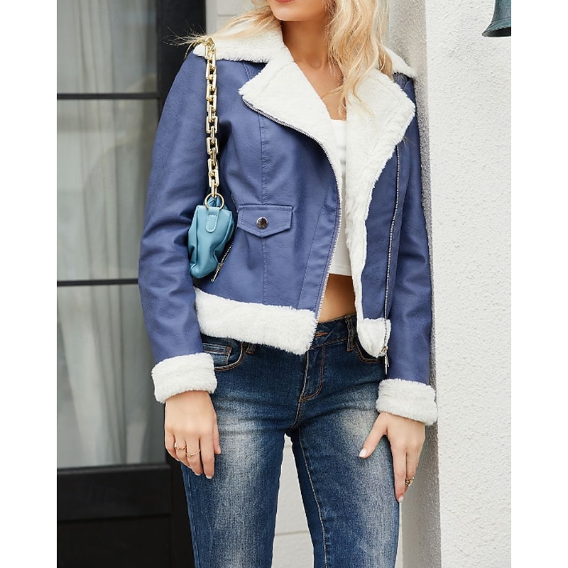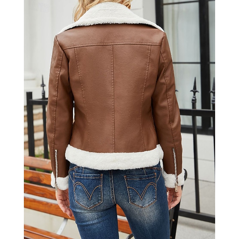This Women's Faux Leather Jacket Warm pleasant Zipper Pocket Casual Plain Outdoor Going out Weekend Regular Turndown Regular Fit Long Sleeve Outerwear Black Royal Blue Camel Fall Winter combines elegant design with practical functionality. Every detail has been carefully considered to ensure you get the best possible experience. The supreme construction means this product will serve you well for years to come.