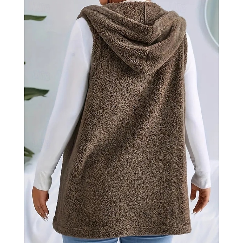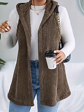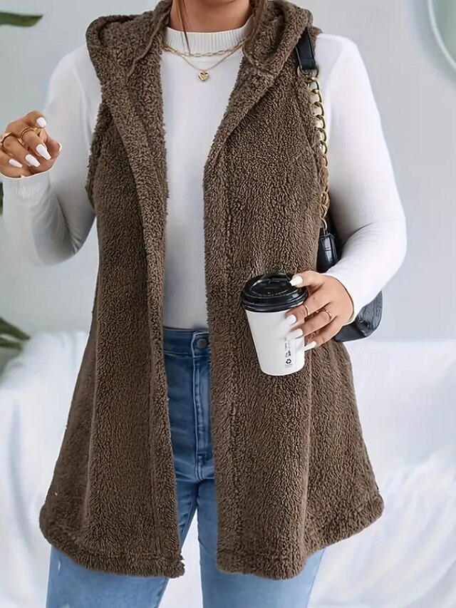 Why Choose Women's Vest comfortable plush Pocket Casual Plain Holiday Daily Wear Open Front Regular Hooded Regular Fit Sleeveless Outerwear Coffee Fall Winter?