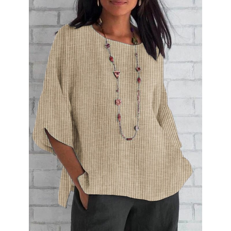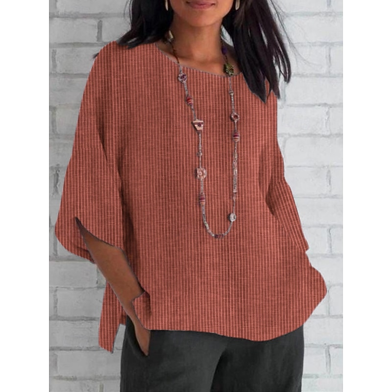 Women's Shirt Striped Daily Casual 3/4 Length Sleeve Crew Neck Regular Tops Daily Holiday Print Black Red Sky Blue Apricot Summer Spring Fall 9