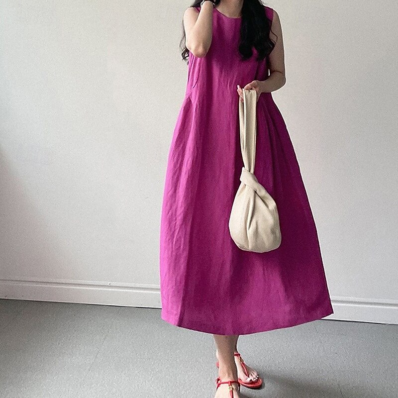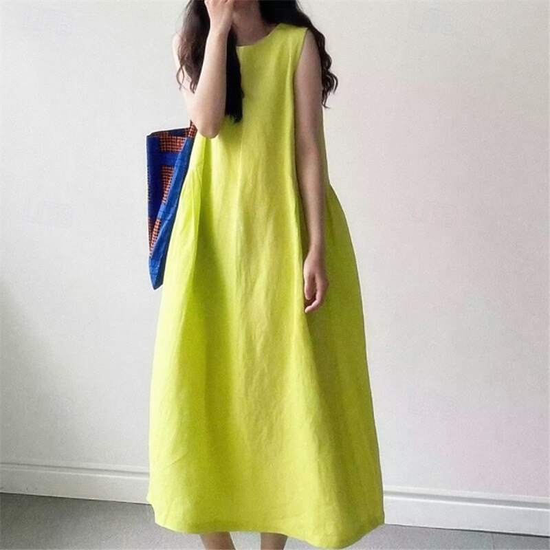 This Women's Long Dress Maxi Dress Linen-Inspired Dresses Casual Dress modern Casual Vacation Daily Date Regular Fit Plain Sleeveless Crew Neck Yellow Purple Summer Spring combines elegant design with practical functionality. Every detail has been carefully considered to ensure you get the best possible experience. The excellent construction means this product will serve you well for years to come.