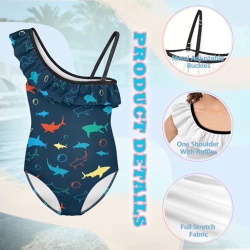 Girls One Piece Swimsuit One Shoulder Ruffle Bathing Suit Casual Summer Swimwear Trendy Swimming Wear for Beach Pool 5