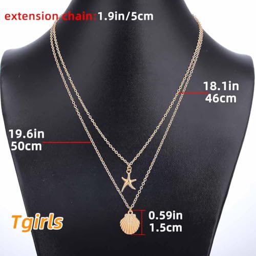 More information about Tgirls Boho Layered Starfish Necklace Seashell Pendant Necklaces Chain for Women