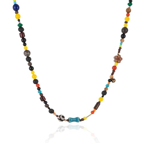 Why Choose 90s Beaded Necklace Color Surfer Crystal Stone Gemstone Wooden Bead Britpop Summer Choker Necklace for Men Women?