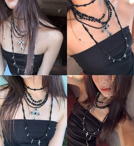 sizzling ! KURTCB Layered Gothic Cross Necklace Goth Grunge Emo Black Chain Beaded Choker Necklace for Women Men Halloween Christmas Gift