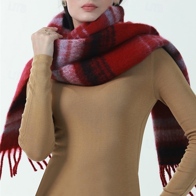 Women's Rectangle Scarf Street Daily Date Red Blue Scarf Stripe 5