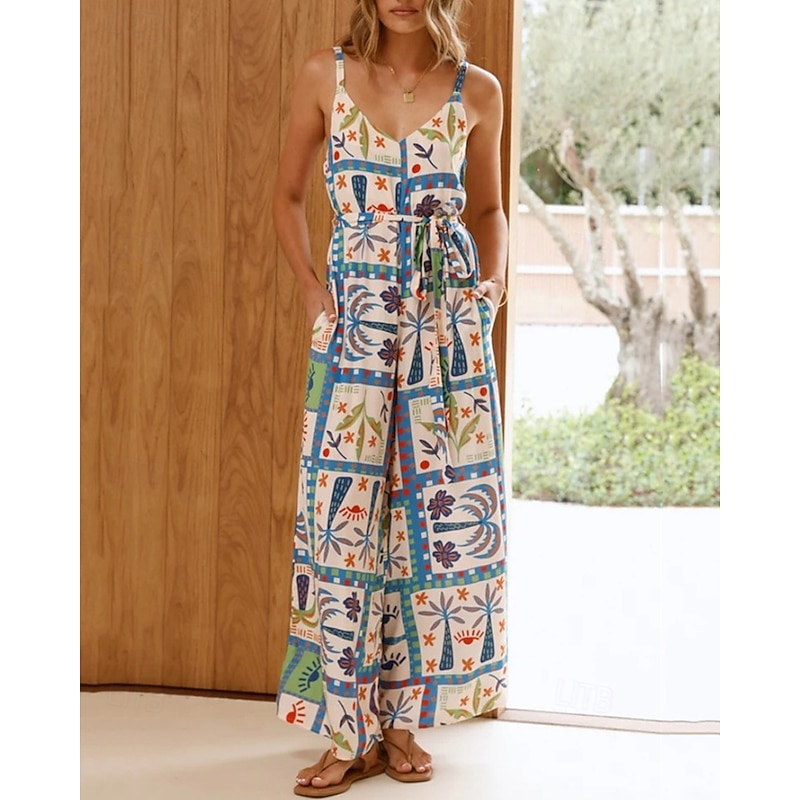 More information about Women's Normal Jumpsuit Casual Floral Sleeveless Wide Leg V Neck Print Street Daily Regular Fit Blue Summer