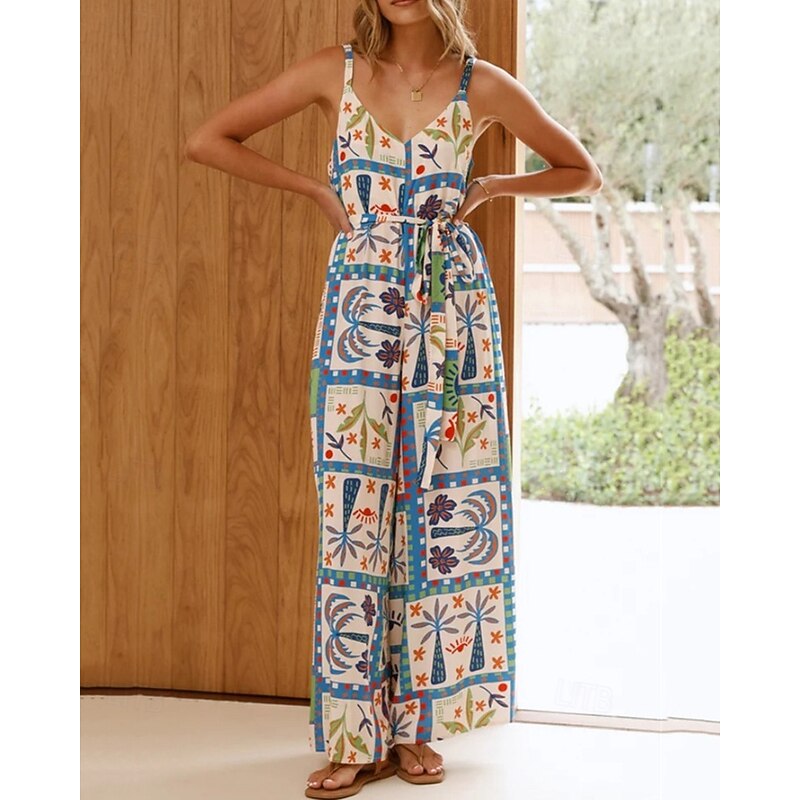 Women's Normal Jumpsuit Casual Floral Sleeveless Wide Leg V Neck Print Street Daily Regular Fit Blue Summer 1
