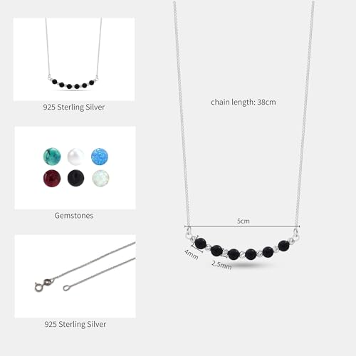 925 Sterling Silver Gemstone Necklace for Women - Beaded Bar Necklaces for Women Silver - Birthstone - Silver Statement Necklace for Women - Prom Necklace Silver