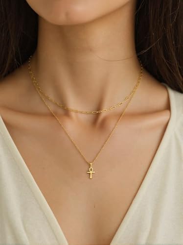 Material: BrassMetal type: No Metal TypeClasp type: BuckleGem type: No GemstoneGOLD ANKH NECKLACE STACK The Ankh, an ancient Egyptian symbol of life and vitality, has been revered for millennia as a sacred talisman believed to bestow strength and vitality upon the wearer. We've elevated this timeless icon with a modern paperclip chain design that creates a perfectly balanced layered look - striking that sweet spot between minimalist chic and eye-catching dimension. The 18k gold-plated finish delivers serious luxury appeal with its rich, warm glow that catches the light beautifullyADJUSTABLE SIZE Layered cross necklace have one 16 +2 Extension cable chain with a ankh pendant and we'll pair it with a delicate 16+2Extension paperclip necklace. You can layer as many combinations as you like. Or you can wear them individually. In short, you get a lot of options for the price of one necklace!SKIN-FRIENDLY Ankh necklace women is made of high-quality stainless steel, 18k gold plated. 6 layers of color-preserving electroplating, not easy to fade. Lead and nickel free and extremely hypoallergenic. You can wear it with confidenceMEANINGFUL GIFTS Gold ankh necklace for women comes in a stunning box and can be used as a gift for your mom or girlfriend. Can be a gift for Thanksgiving, Mother's Day, Christmas, Wedding Anniversary, Women's Day, Teacher's DayPRETIGE SERVICE If you have any questions about the product, you can consult our customer service, we will reply within 12 hours and solve your problem until you are satisfied Perfect for everyday use. top-grade materials and excellent craftsmanship ensure long-lasting durability.