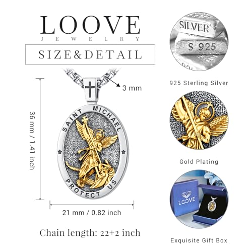 • Material and Size: The St.Michael Medal Pendant is crafted from S925 sterling silver and paired with a stainless steel box chain. The pendant measures 21.00*36.00 (0.82*1.41 inches), and the chain length is 22"with a 2" extender