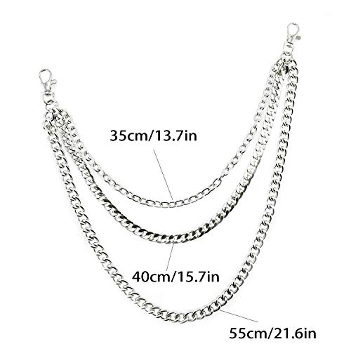 Durable Punk Accessories - The pants chain is constructed with quality alloy material with high toughness and durability, sturdy and strong, not easy to fade, rust or breakAdd Bright Spot - This belt chain look simple and classic, never out of date, add a flair to your simple plain jeans, the emo chains could easily attracting a lot of attention and making you look more fashionableEasy to Wear and Take off - The pants chain belt chain wallet chain is easy to attach to your trousers with both end lobster clasps, the clasps open and close smoothly, convenient for you to wear and take off the pocket chain. The chains for pants are a great gift for mom, wife, girlfriend, sister, women, menStylish & Unisex - The wallet chain pocket chain is ideal for Dancers, Skateboarders, Bikers, Motorcyclists, Punk and Hip Hop Lovers, the full of punk style 3-layer goth chains can easily make you stand out of the crowdWidely Use - The chain belt chains for jeans is great emo accessories, goth, punk and rock accessories. The wallet chains can be used as necklace, trousers chain, pocket chain, pants chain, key chain, jeans chain or a contemporary accessory for DIY jewelry Perfect for everyday use. premium materials and excellent craftsmanship ensure long-lasting durability.