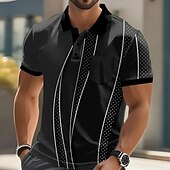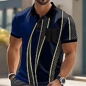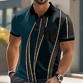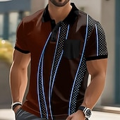 More information about Men's Geometic Line Polo Short Sleeve Polo Shirts Collared Shirts Business Casual Outdoor Athleisure Daily Wear Buttons Pocket 3D Print Summer Dark Brown Dark Green Dark Blue