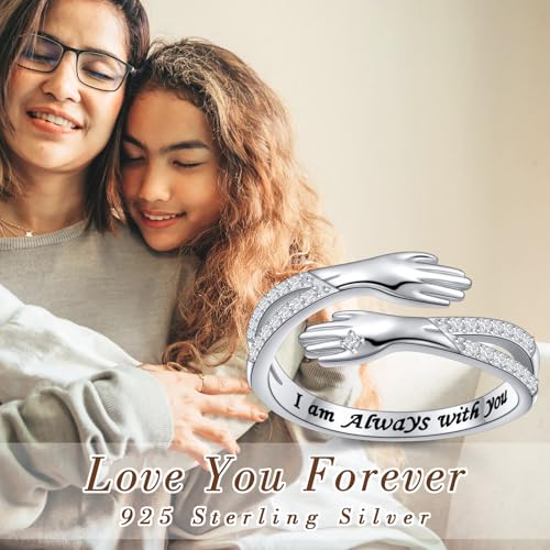 • 【 Material 】 This ring is adorned with shiny zircon stones on both sides, carved with 'I am Always with you'. Our fashionable hug ring is made of 925 sterling silver, on the house of nickel, lead, and cadmium, and is allergic to the skin. It is not hassle-free to break, discolor, or fade.