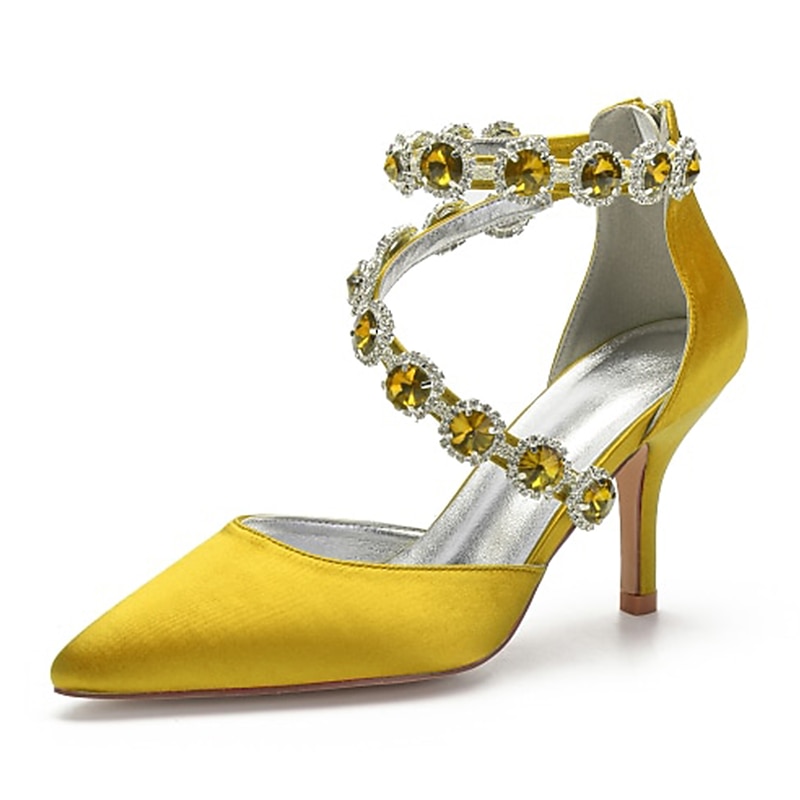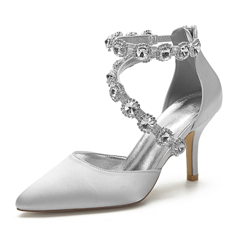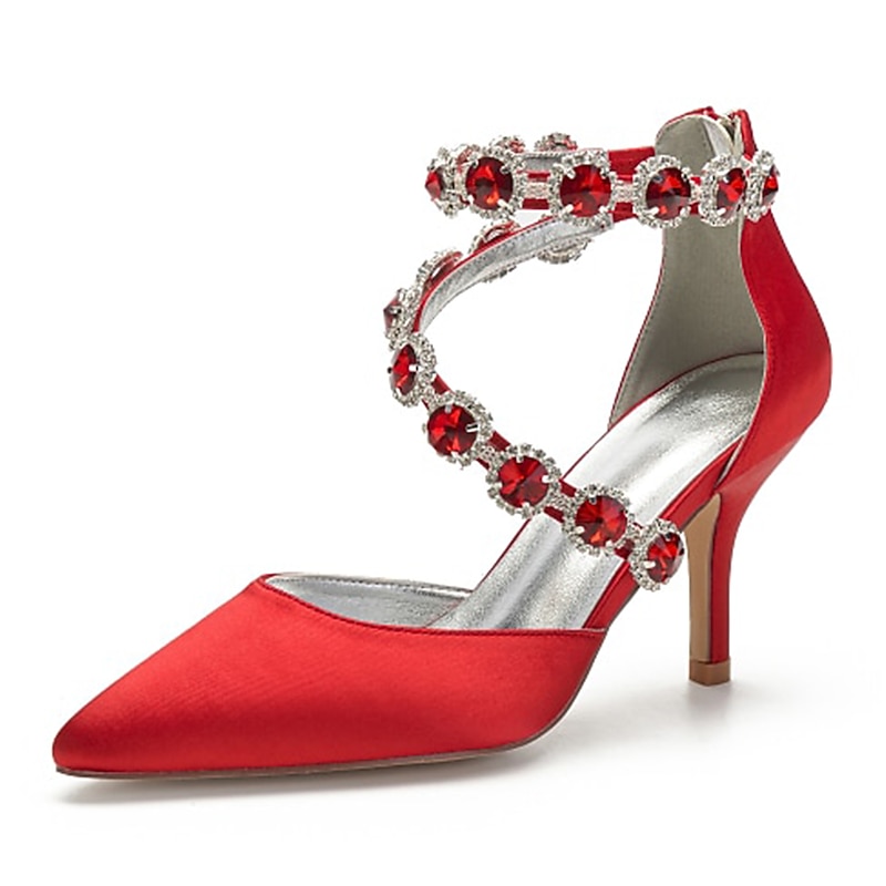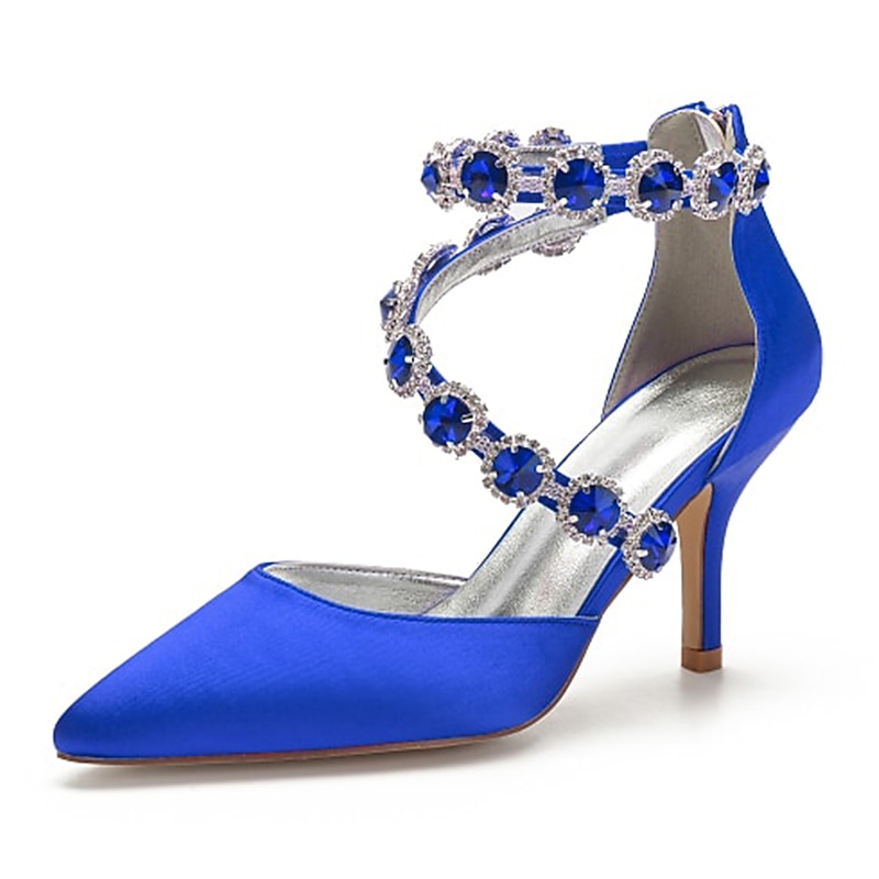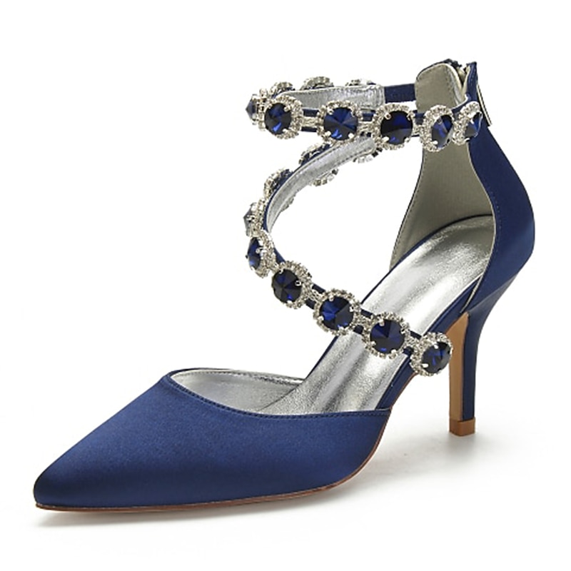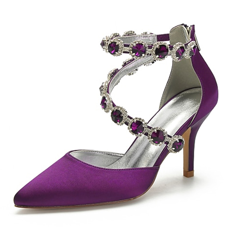Why Choose Purple Satin Women's High Heel Shoes with Rhinestone Embellishments and Ankle Straps for Weddings and Cocktail Formal Events?