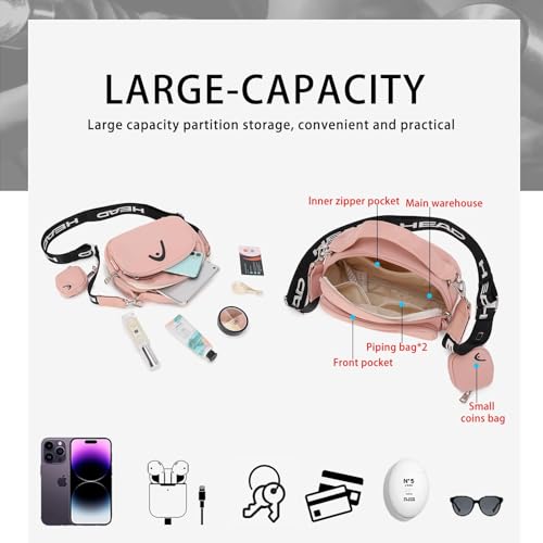 Fabric type: 100% PolyesterOrigin: ImportedClosure type: ZipperđăLightweight & Multiple Layers Purses for Womenă : This small crossbody bag for women is 22*7*18cm /8.7*2.8*7inch(L*W*H) and weighs only 0.4kg/0.88lb, lighter than a bottle of ordinary mineral water; Although this shoulder purse is very lightweight, it is spacious inside, and the shoulder handbag purse has a main compartment (1*Inner zipper pocket; 2*Inner slip pockets) and has enough room to carry your daily essentials and can hold your cell phone, power bank, wallet, passport and more.đăDetachable Coins Bag & Shoulder Strapă: The small coins bag with the HEAD cross body bag for women adopts the hook design, which can be disassembled at will, and the decorative sense and practicality coexist; The strap of the small crossbody bags for women is removable and adjustable, which can be used as a crossbody bag/shoulder bag/handbag, and the wide strap of the shoulder purses for women is made of nylon material, which is not easy to tighten the shoulder, and improve your use comfort!đăWaterproof & top-grade Materială: This HEAD women shoulder purse for women is made of durable polyester fabric, the lotus waterproof fabric is easier to clean, breathable, durable, wear-resistant, multi-strand stitching. The handle at the top of the women casual crossbody handbag is thick and firm, soft and comfortable, and effective strangle prevention. The zipper of the HEAD crossbody bag for women is smooth and easy to pick up.đăBest Choice on Daysă : This HEAD small shoulder handbag for women has a variety of uses, suitable for any group of people to use, leisure, business, sports, travel dates and other occasions are applicable, this crossbody purse for women is a best choice on variety of festivals or anniversaries for parents, male and female friends, and sisters, friends. this women shoulder purse is stunning and practical, and they will think of you every time they use this crossbody bag.đăAfter-Sales Serviceă: HEAD: We always believe in and stand by the quality of our women black crossbody handbag. If you have any questions or suggestions about this shoulder purse for women, please contact us via email on the order page, we will give you a satisfactory reply within 24 hours, your comments are very valuable, thank you! Perfect for everyday use. High quality materials and excellent craftsmanship ensure long-lasting durability.