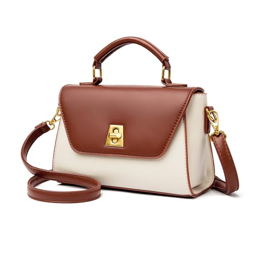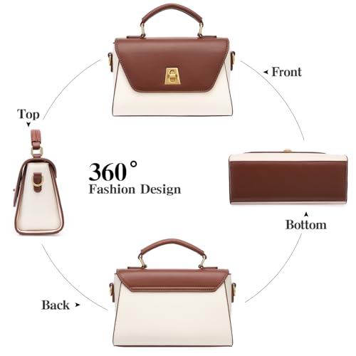 • DESIGN: Two-tone leather small handbag featuring a sophisticated brown and beige color scheme with elegant gold-tone hardware accents