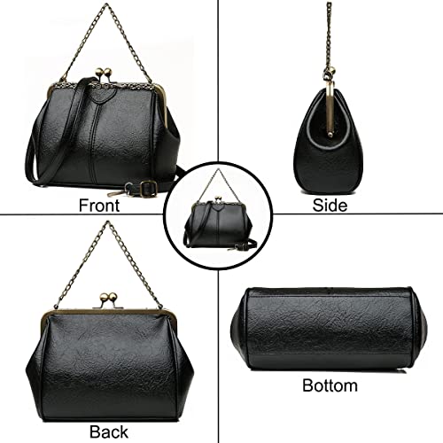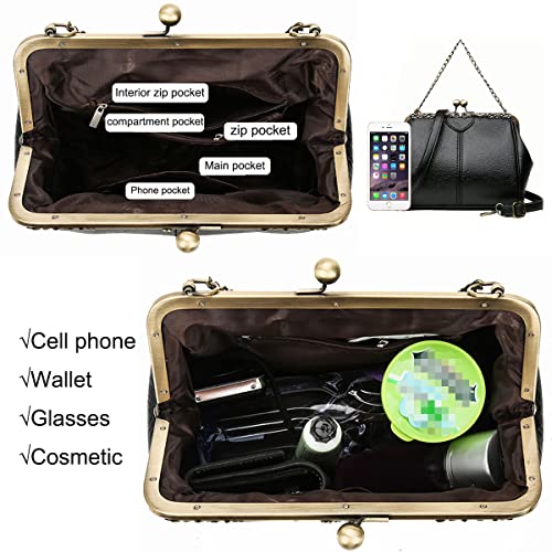 • 【SOFT MATERIAL】excellent Texture PU Leather.Retro titanium bronze tone frame design with kiss lock closure,classical retro look,casual style.