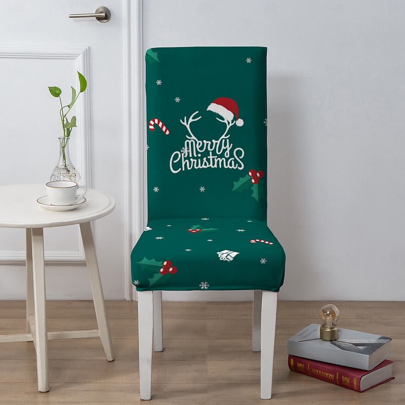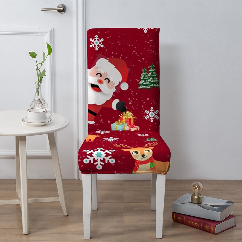 sizzling ! Christmas Dining Chair Cover Stool Chair Cover, Geometric Printed Polyester Slipcovers, Holiday Decorative Chair Protector for Home