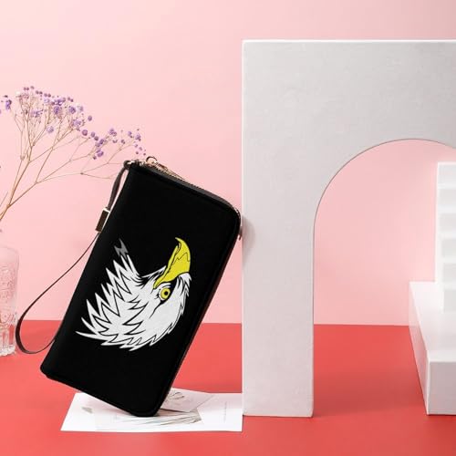 Ferocious Bald Eagle Leather Wallet Fashion Bifold Purse Long Pouch with Wrist Strap for Men Women