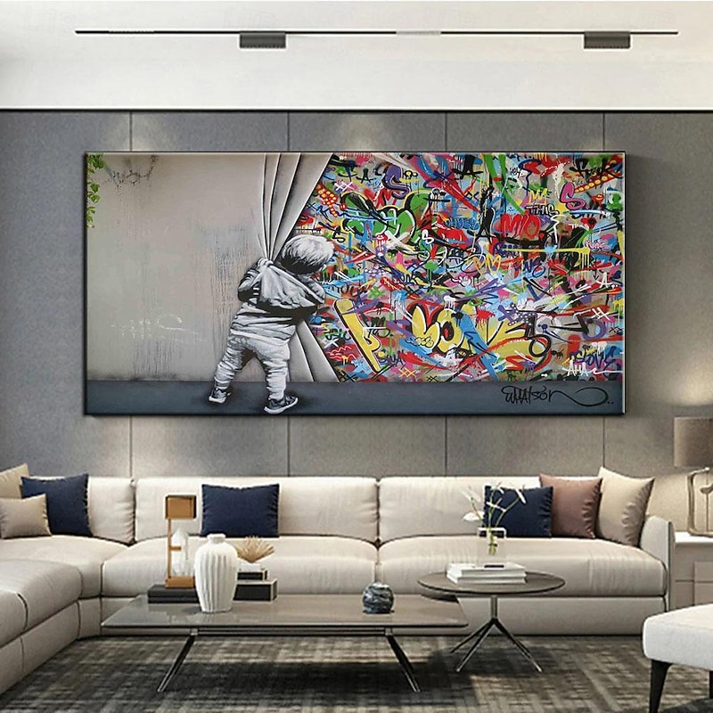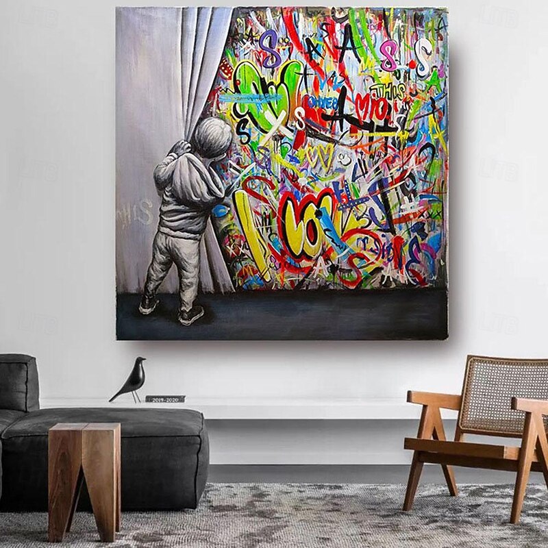 $85.99 - Handmade Hand Painted Oil Painting Wall Art Banksy Boy Banksy oil Painting Wall Art Rolled Canvas No Frame Unstretched 2025. Shop for cheap Street Art online? Buy at lightinthebox.com on sale today!
