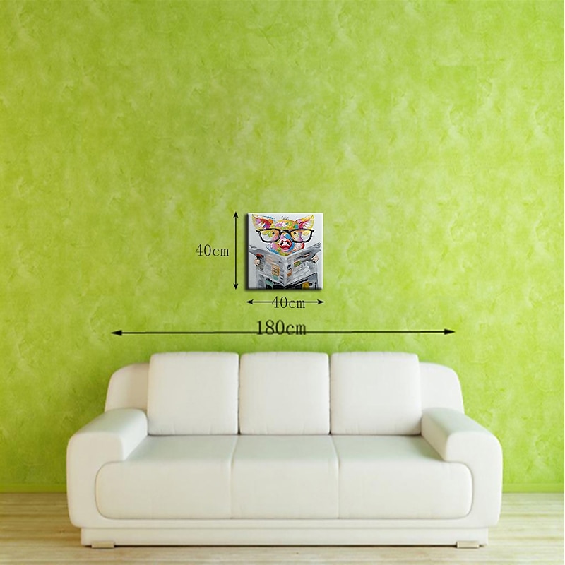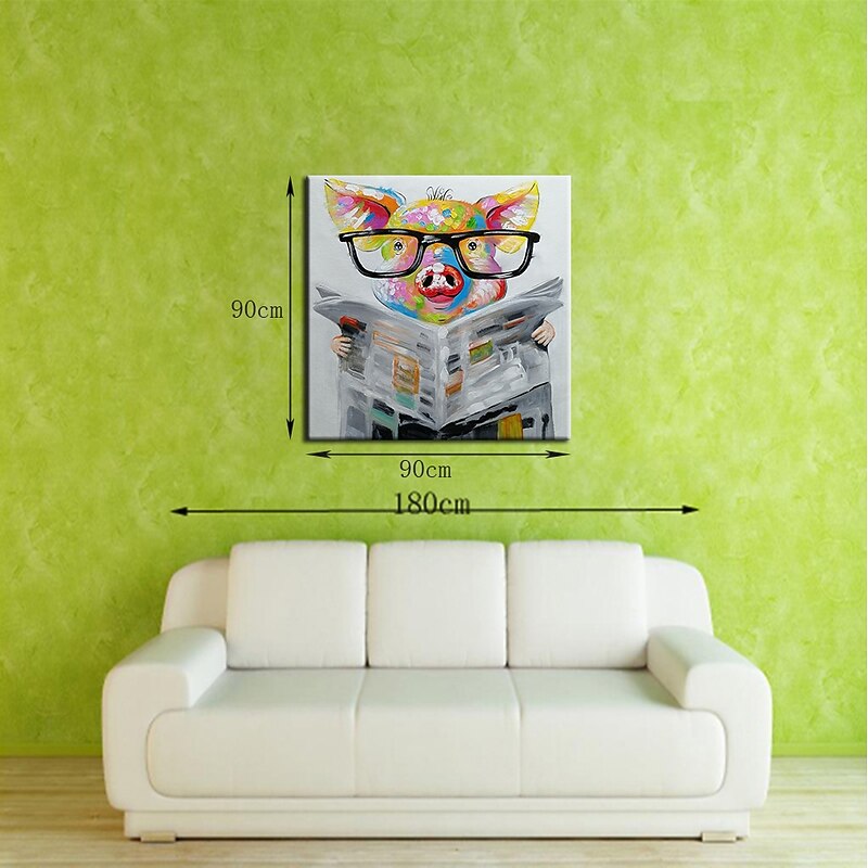 Handmade Oil Painting Canvas Wall Art Decoration Pig Reading Newspaper Amimal Pattern for Home Decor Stretched Frame Hanging Painting 8