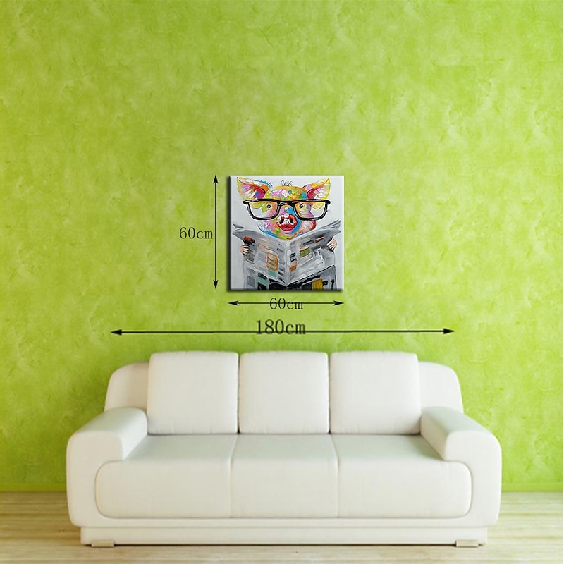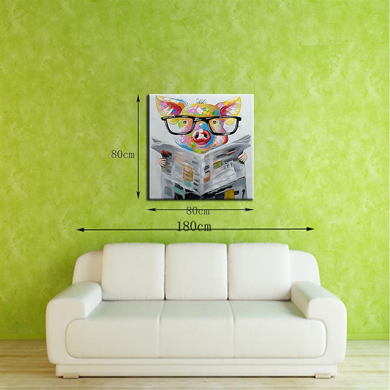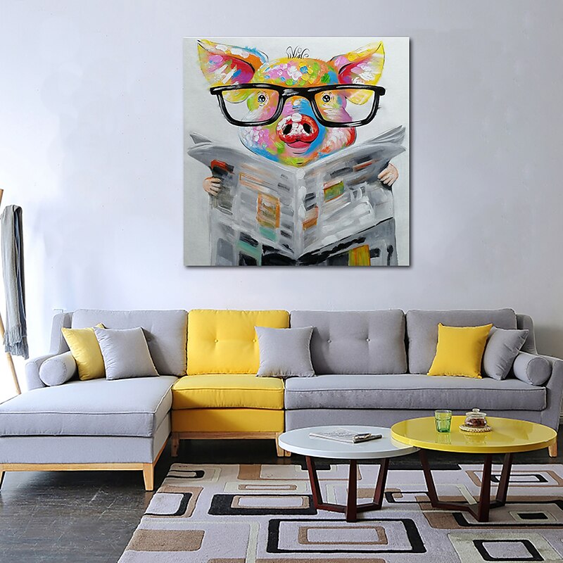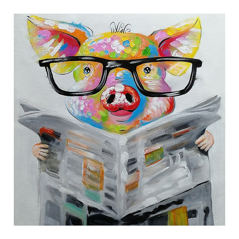 Handmade Oil Painting Canvas Wall Art Decoration Pig Reading Newspaper Amimal Pattern for Home Decor Stretched Frame Hanging Painting 9