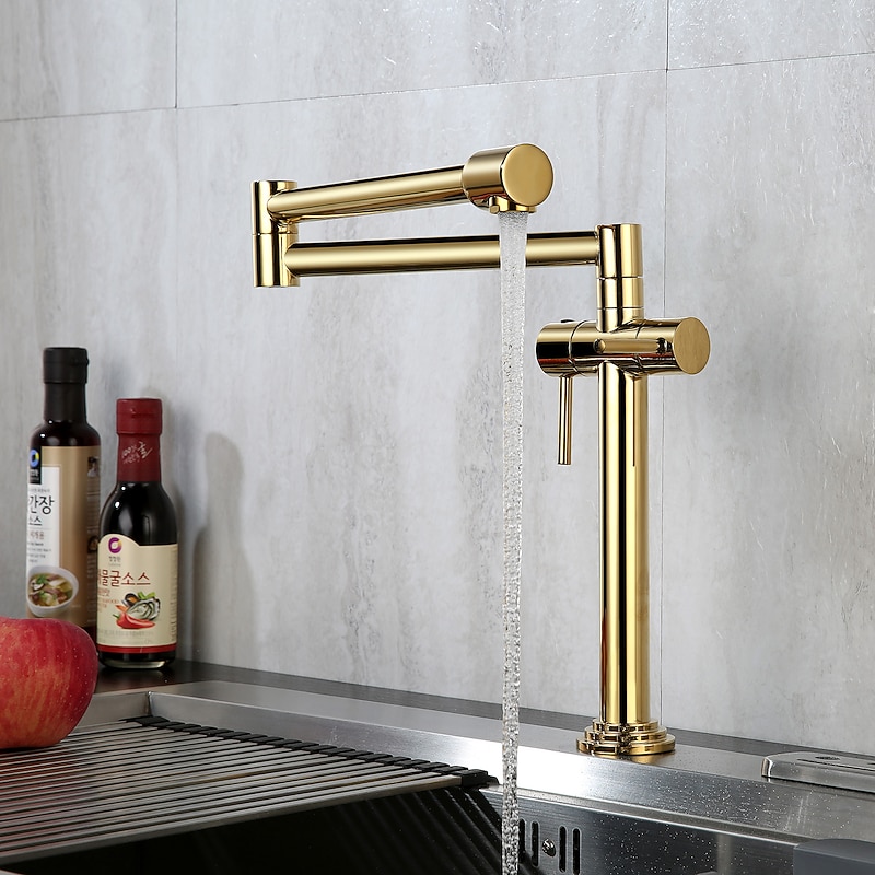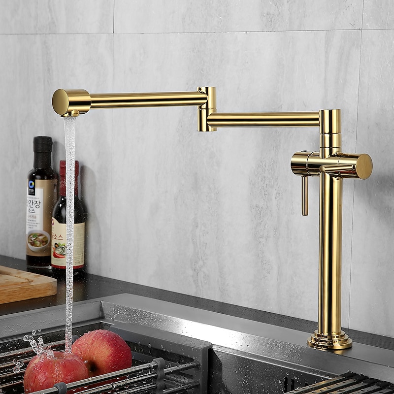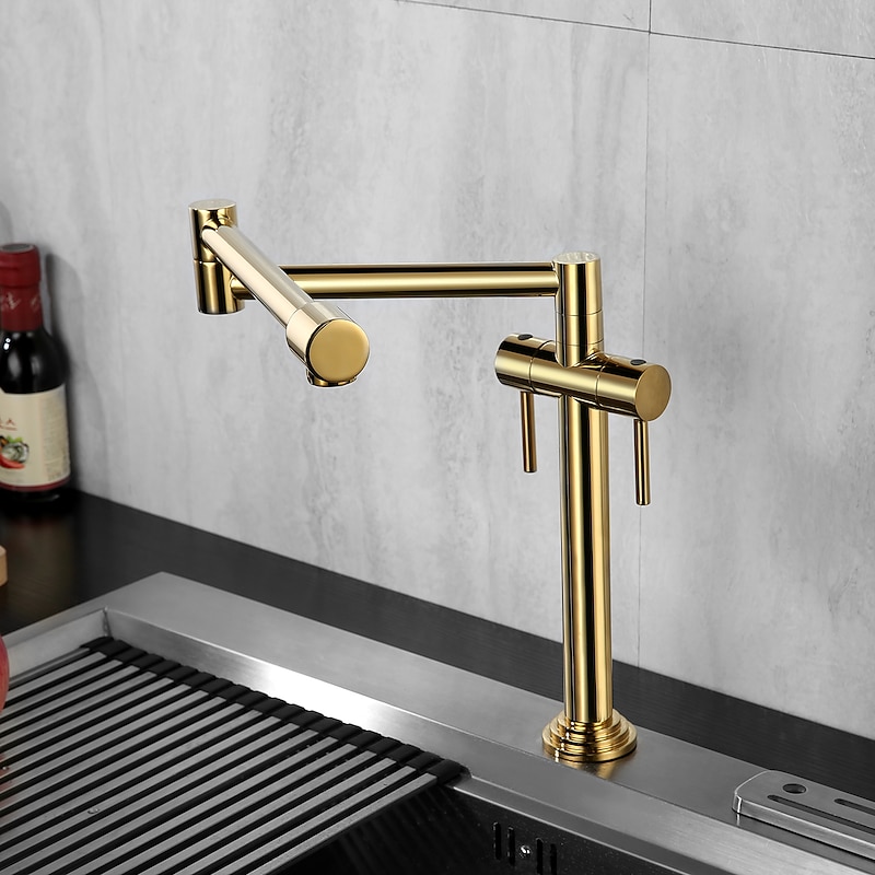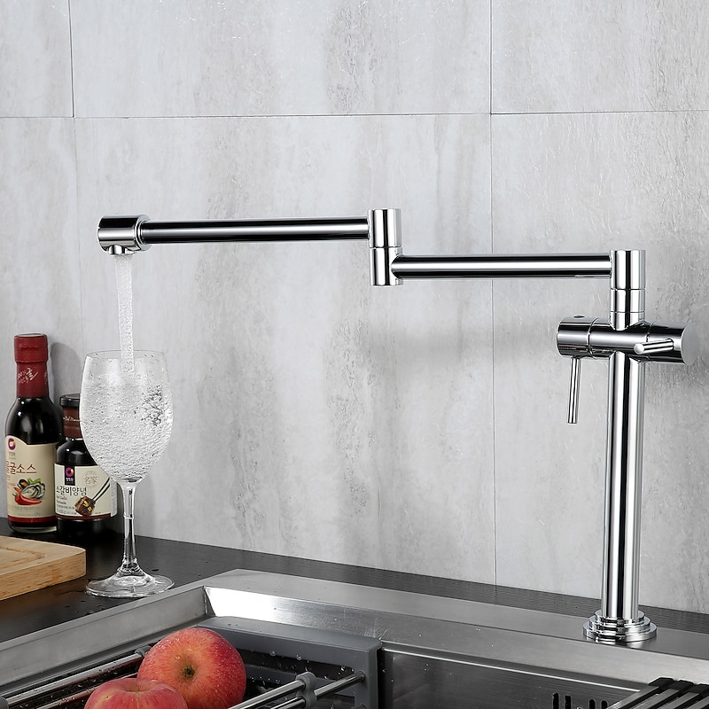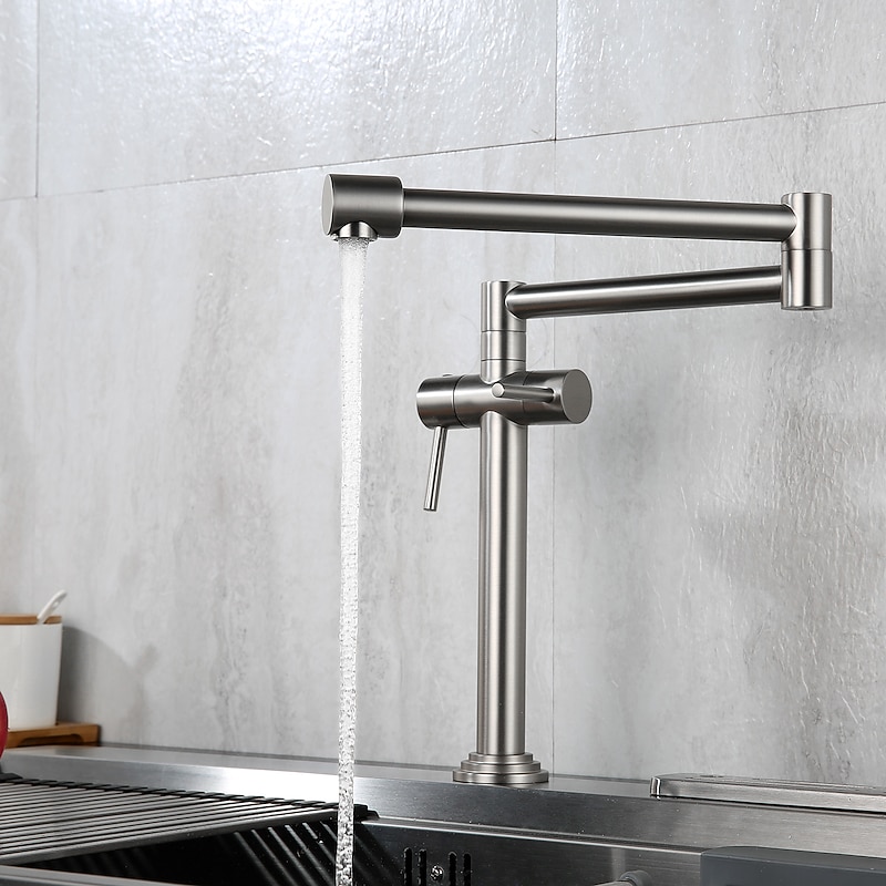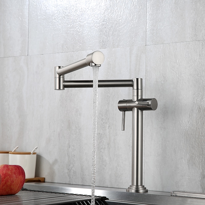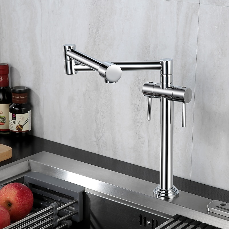 Foldable Kitchen Sink Mixer Faucet Deck Mounted, 360 Swivel Folding Single Handle Kitchen Vessel Taps 1