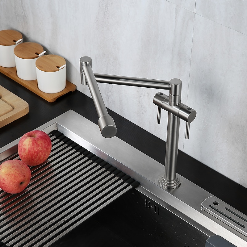 sizzling ! Foldable Kitchen Sink Mixer Faucet Deck Mounted, 360 Swivel Folding Single Handle Kitchen Vessel Taps