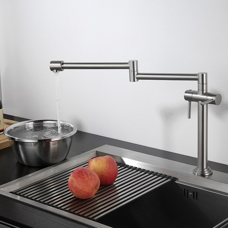 Foldable Kitchen Sink Mixer Faucet Deck Mounted, 360 Swivel Folding Single Handle Kitchen Vessel Taps 11