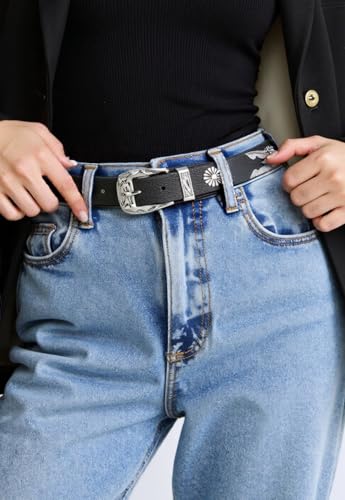 More information about Western-Concho-Cowboy-Belts for Women - PU-Leather Thin Rivet Cowgirl Studded Belt for Jeans(for 29-38''Wasit)