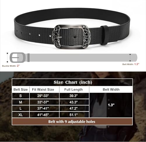 Women's Genuine Leather Belts, Western Vintage Belt with Engraved Buckle, Ladies Belt for Jeans Pants