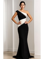 More information about Black and White Mermaid Evening Gown Elegant Dress Wedding Formal Floor Length Sleeveless One Shoulder Stretch Crepe with Glitter Ruched