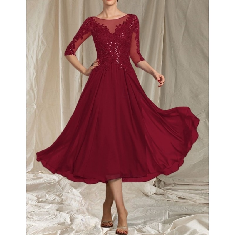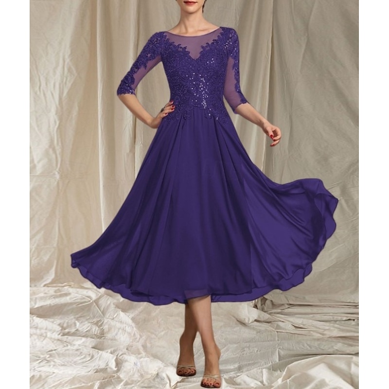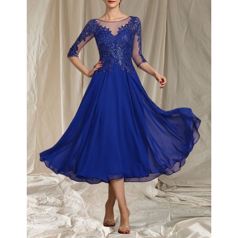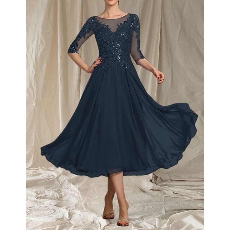 This A-Line Mother of the Bride Dress Wedding Guest Elegant Crew Neck Tea Length Chiffon Tulle Half Sleeve with Beading Appliques Midi Dress combines elegant design with practical functionality. Every detail has been carefully considered to ensure you get the leading possible experience. The supreme construction means this product will serve you well for years to come.