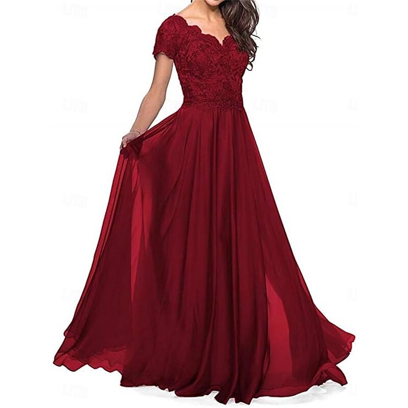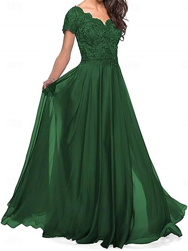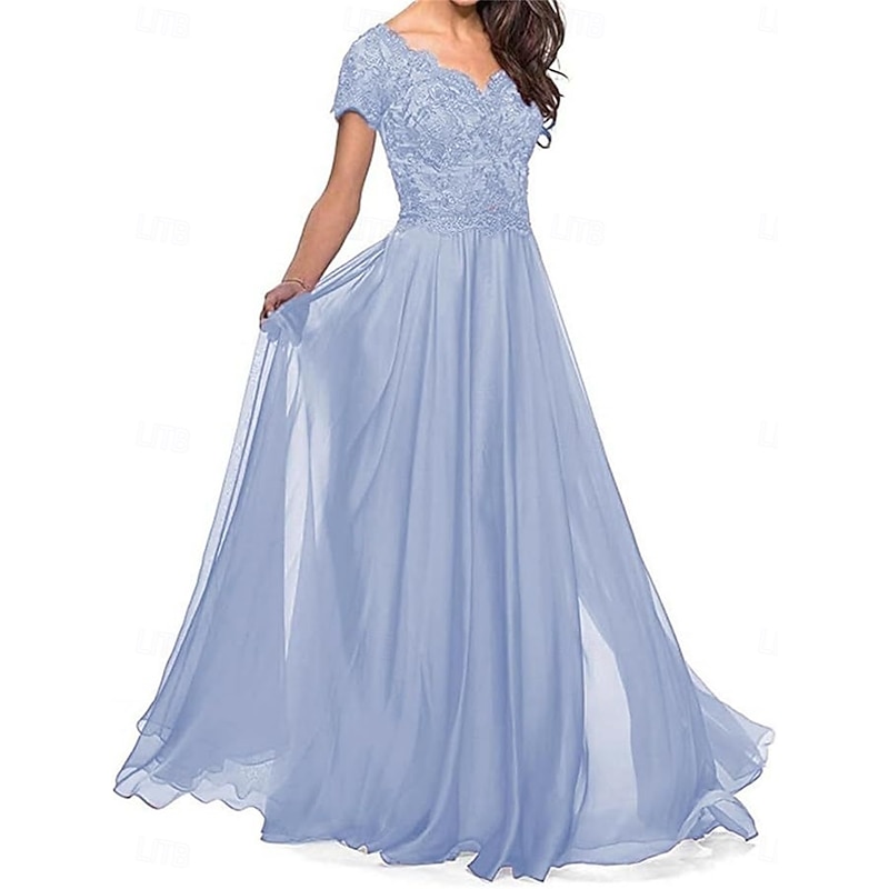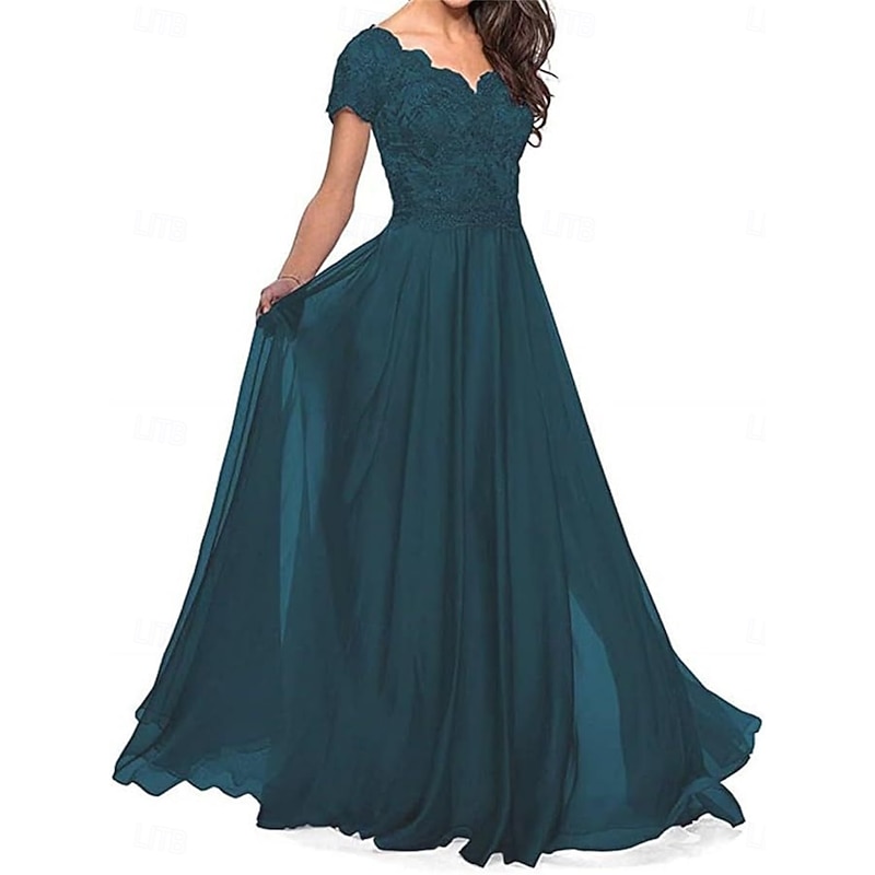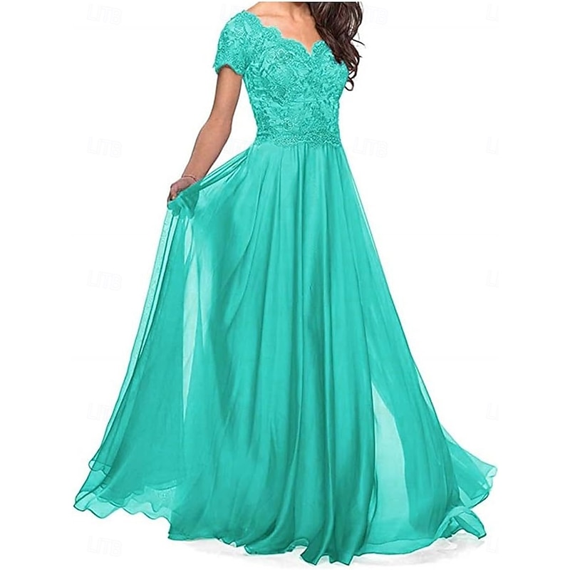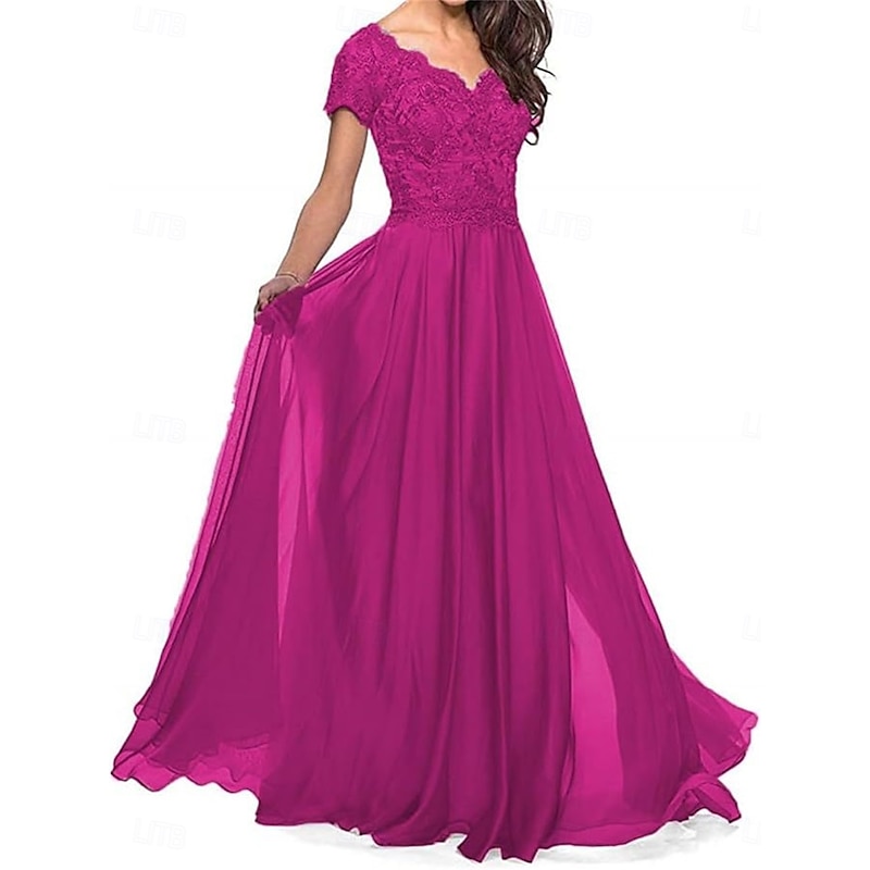 More information about A-Line Mother of the Bride Dress Elegant Sweetheart Floor Length Polyester Short Sleeve with Pleats