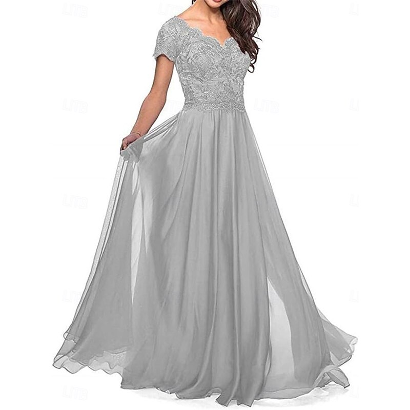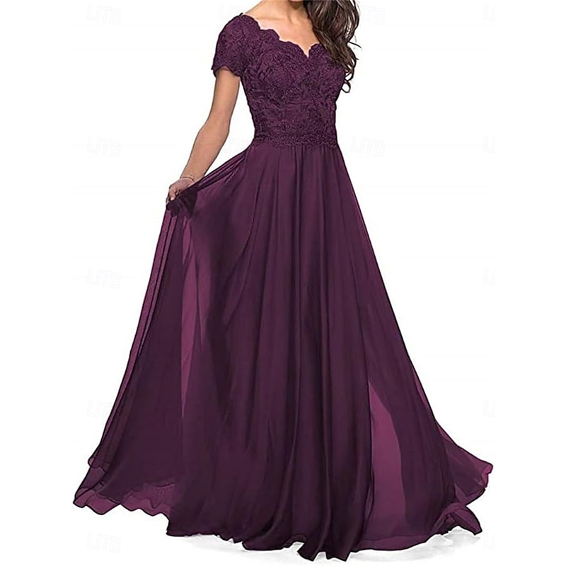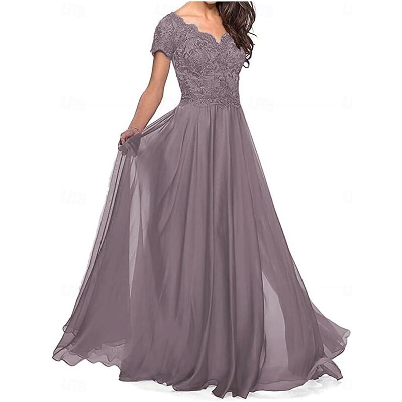 A-Line Mother of the Bride Dress Elegant Sweetheart Floor Length Polyester Short Sleeve with Pleats 6