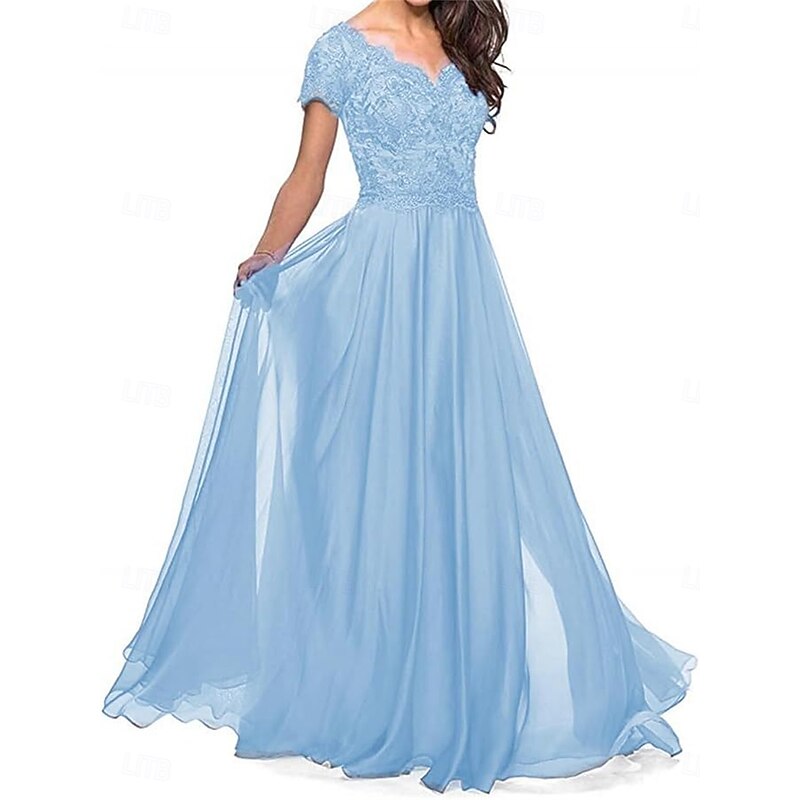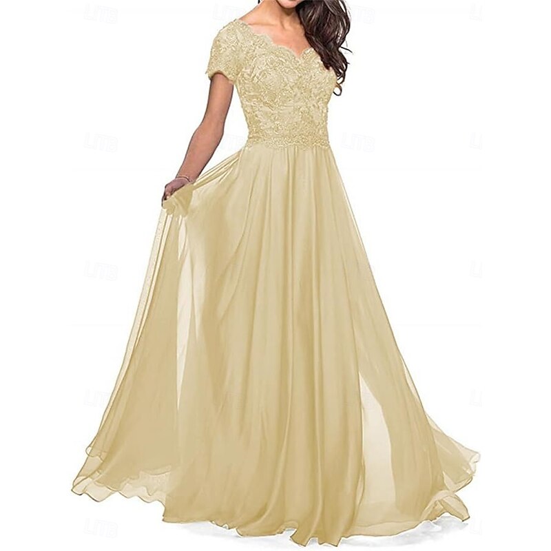 A-Line Mother of the Bride Dress Elegant Sweetheart Floor Length Polyester Short Sleeve with Pleats 22