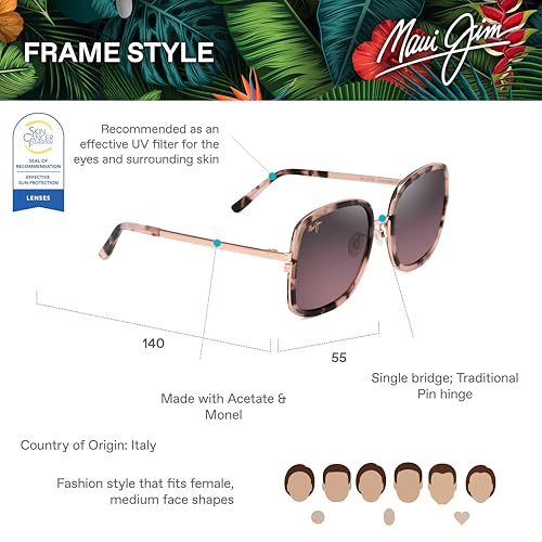 Why Choose Maui Jim Women's Pua W/Patented Polarizedplus2 Lenses Square Sunglasses?
