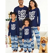 Why Choose Family Pajamas Letter Christmas Pattern Home Print Dark Blue Long Sleeve Active Matching Outfits?