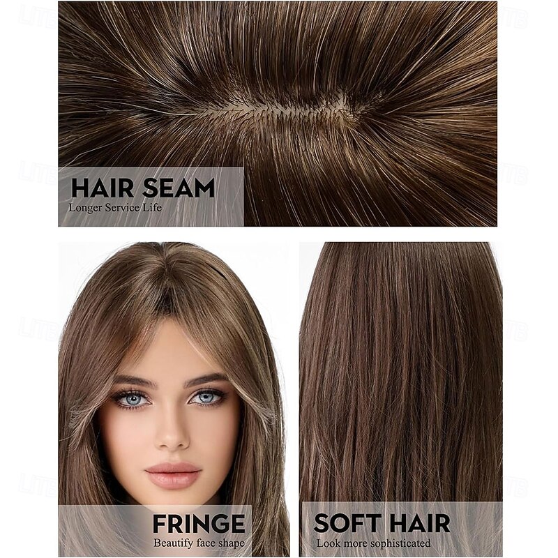 Natural Long Wigs for Women with Fringe Synthetic Heat Resistant Hair Ombre Brown Wig for Daily Party Cosplay Use 14