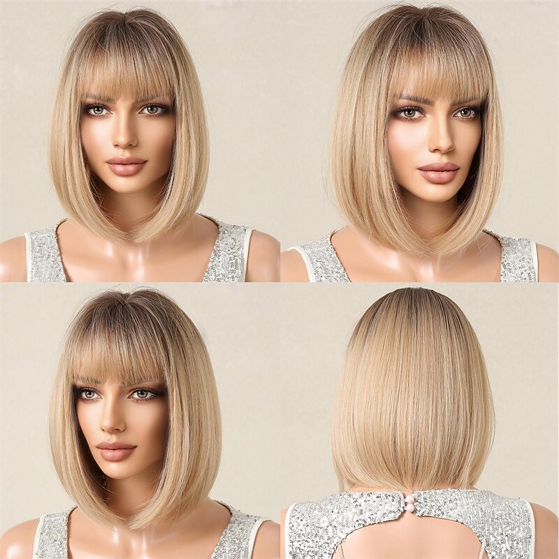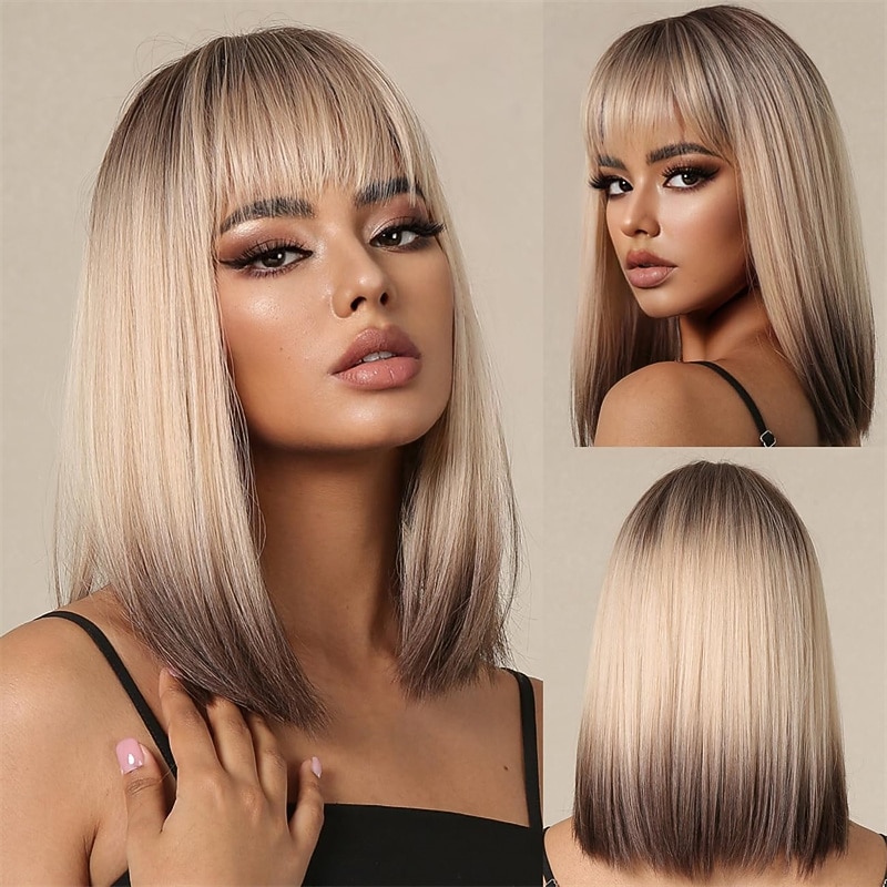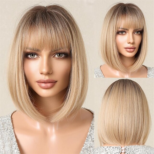 $20.99 - Bob Ombre Blonde Wig with Bangs Natural Short Straight Wigs for Women Shoulder Length Synthetic Wigs for Daily Cosplay 2025. Shop for cheap Synthetic Trendy Wigs online? Buy at lightinthebox.com on sale today!