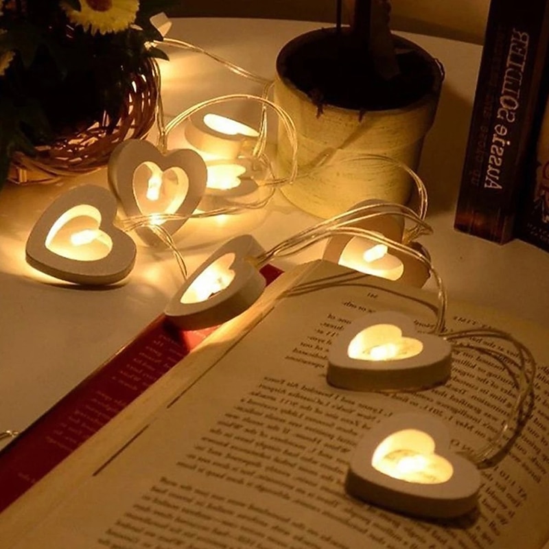 Elegant Wedding Reception Party 3M 20Led Love Heart LED String Light Wooden Fairy Lights for Window Room Indoor Outdoor Decor Christmas Wedding Party Decoration 10