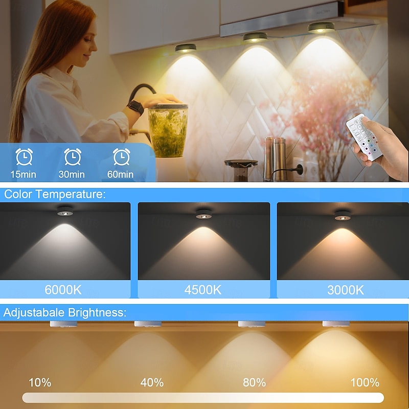 $8.49 - 1 Pc RGB dimmable rechargeable magnetic spotlight cabinet light wardrobe wine cabinet light mural light wiring free remote control control cat eye light ice hockey light dimmable timer 2025. Shop for cheap Cabinet Light online? Buy at lightinthebox.com on sale today!