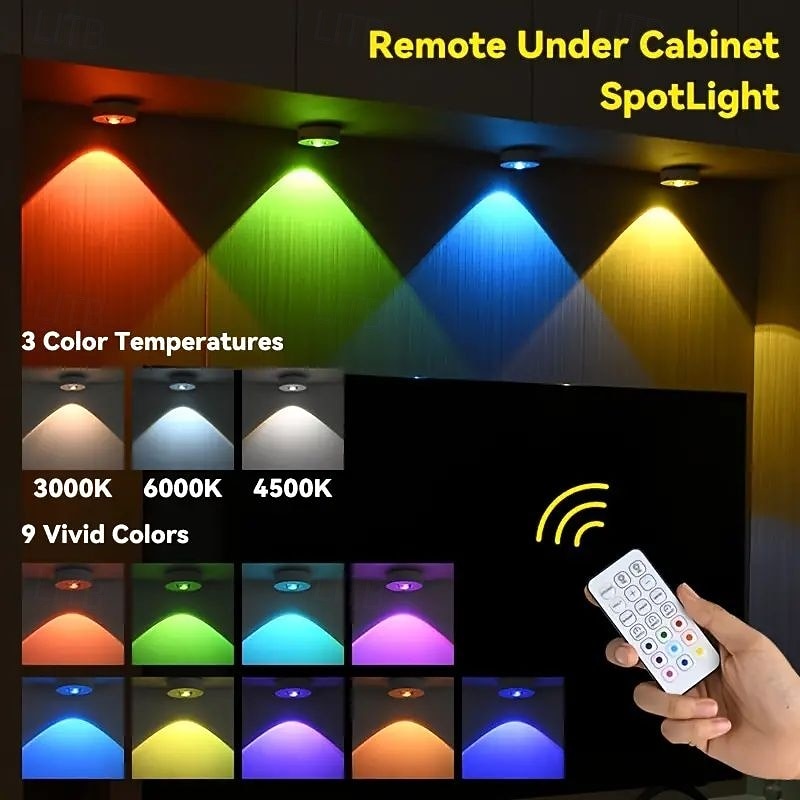 $35.99 - 3pcs Rechargeable LED Under Cabinet Light with Remote, Spotlight RGB Color Changing Warm & Neutral White Options Adjustable Brightness Magnetic Mount For Easy Installation for Halloween 2025. Shop for cheap Puck Lights online? Buy at lightinthebox.com on sale today!