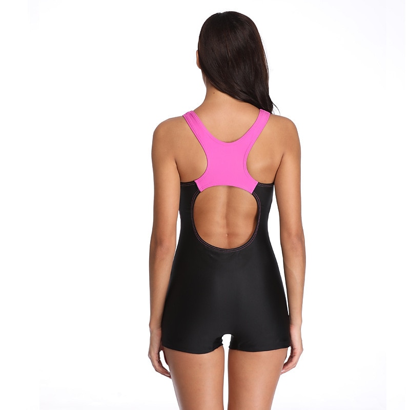 More information about Women's Athletic Swimwear One Piece Swimsuit Racerback Boyleg Swimsuit Surfing Racing Athletic Patchwork Swimwear Chlorine resistance expedient Dry Lightweight Terylene Beach Wear