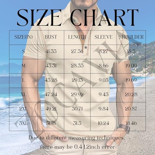 ZOCAVIA Men's Summer Polo Shirts Casual Solid Color Short Sleeve Tees Trendy Button Collared V Neck Slim Fit Tops Pocket 5