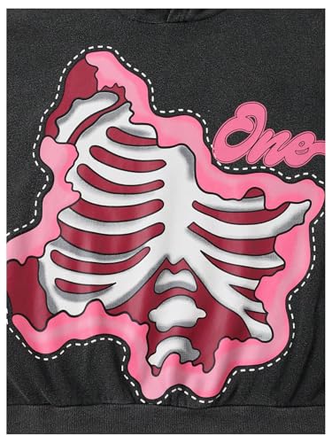 - Feature: Men's baggy hoodies, drawstring, hooded, drop shoulder, long sleeve, skeleton graphic pattern, streetwear, showing your rare personality