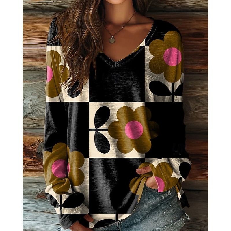 Why Choose Women's T shirt Long Sleeve Floral Graphic Plants Vintage sophisticated Casual Long Sleeve V Neck Regular Tops Daily Print Black White Yellow Pink Blue Spring Fall Prefall?