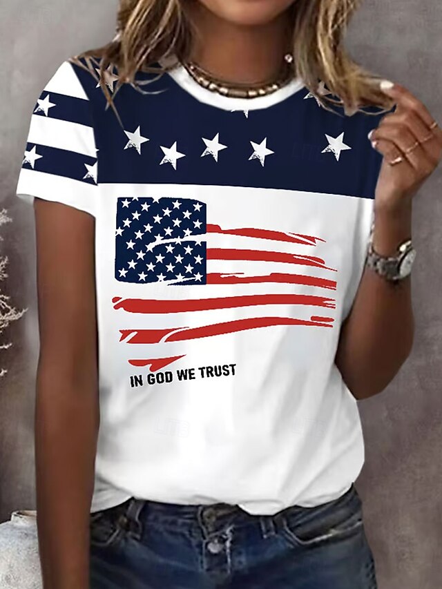 Why Choose Women's Patriotic T Shirt Graphic Flag Vintage sophisticated iconic Short Sleeve Crew Neck Regular Tops Daily Weekend Print Black Red Blue Summer?