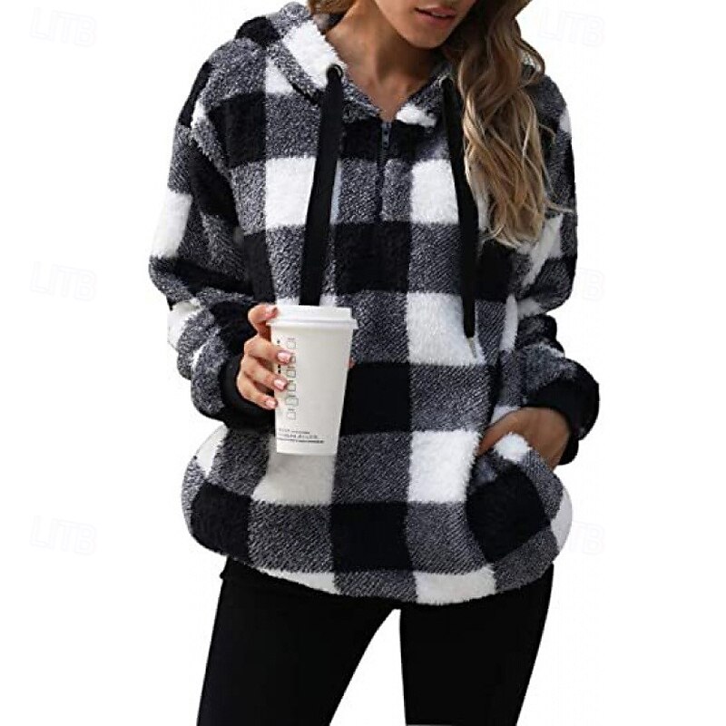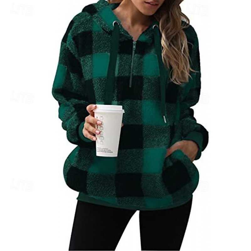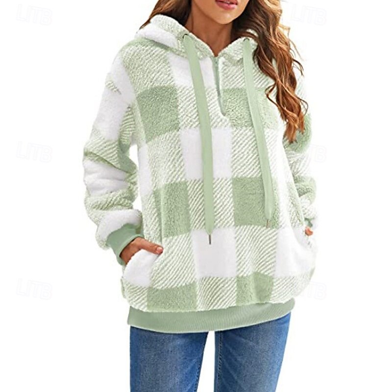 More information about Women's Pullover Hoodie Sweatshirt Plaid Streetwear Casual Long Sleeve Hooded Regular Tops Street Holiday Going out Pocket Black Light Green Pink Red Blue Fall Winter